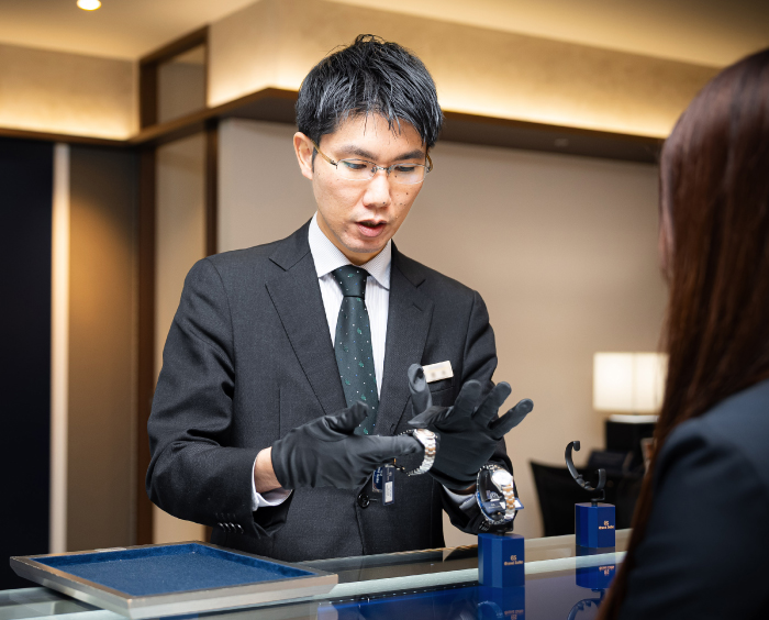 私たちはお客様との温かいつながりを大切にしております。そのためには、お客様の信頼を得られるよう自身が時計・眼鏡のプロフェッショナルということを